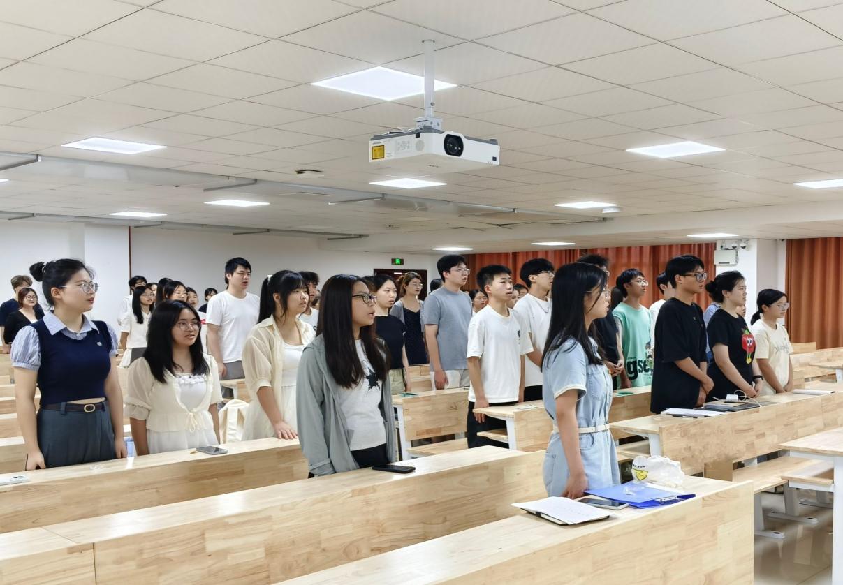 入团仪式在庄严的国歌声中正式开启。张荣颖宣读了新团员名单,老团员向新团员颁发了团章、团员证并为其佩戴团徽。在唐治怡的带领下,全体新团员进行了庄严的入团宣誓。