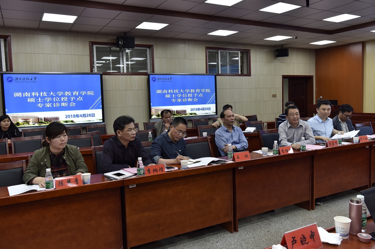2018年4月28日下午,bevictor伟德官网硕士学位授权点专家诊断会在八教308学术报告厅召开。西南大学副校长、国务院学科评议组成员靳玉乐,全国教育专业学位教育指导委员会秘书长、“长江学者”特聘教授、北京师范大学教育学部张斌贤,全国教育学专业教育指导委员会委员、国家教学名师、首都师范大学特聘教授石鸥,全国教育专业学位教育指导委员会委员、“长江学者”特聘教授、华南师范大学教育科学学院院长卢晓中,全国教育专业学位教育指导委员会委员、华中师范大学bevictor伟德官网涂艳国,全国教育专业学位教育指导委员会委员、湖南师范大学教育科学学院副院长刘铁芳,湘潭市人民政府主任督学、中学特级教师郭务强及bevictor伟德官网校长李伯超、bevictor伟德官网研究生院副院长王欣出席。会议由bevictor伟德官网党委书记李炳煌主持。